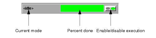 AVS/Express supplies a standard user interface for displaying the information in Scheduler as part of the SingleWindowApp and MultiWindowApp DataViewers. This appears below the Module panel and consists of simple User Interface widgets attached to the percent_done, current_mode, interrupt, and disable fields.