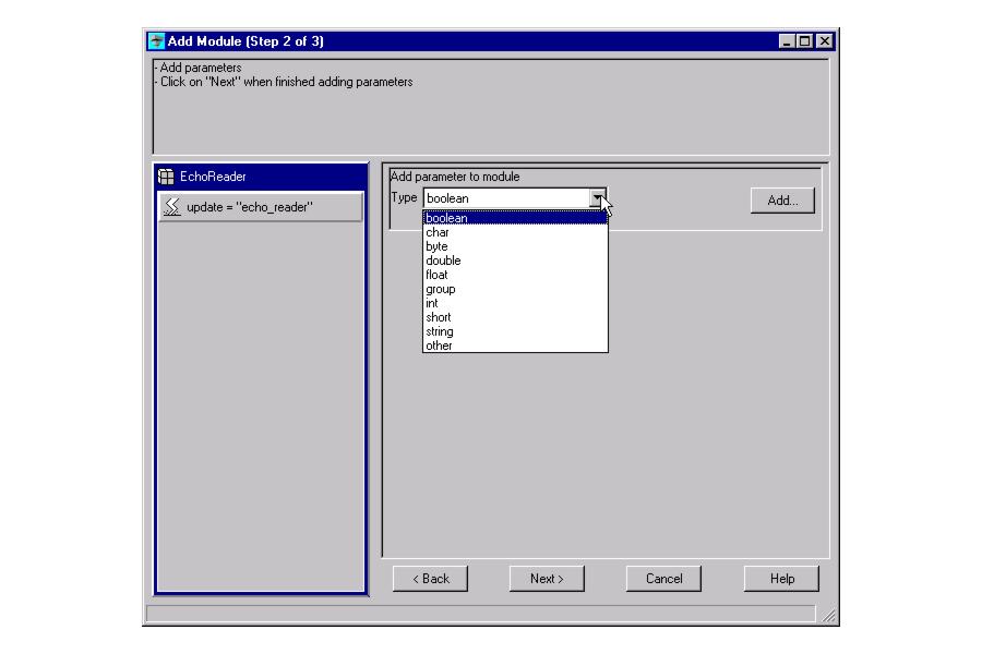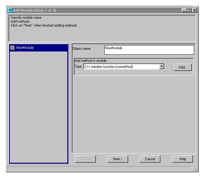 Object->Add_Module. The first page of the Add_Module Wizard appears.