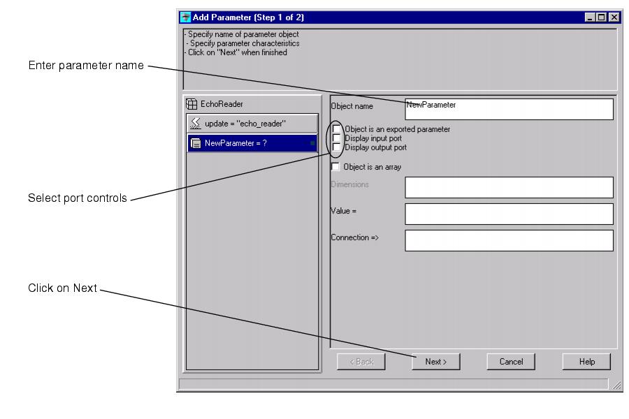 - Note: These toggles are independent of one another. The toggle Object is an exported parameter determines whether the parameter is visible or not when the module is opened in Display Params mode, and the Display input port makes the parameter's port available at the module interface. You can set either one without setting the other.