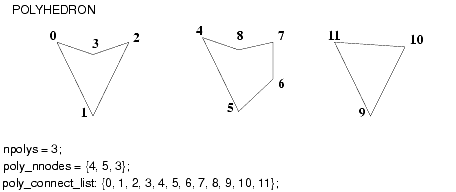 The poly_connect_list is an integer array containing indices into the node coordinate array specifying which nodes are the corners of each polygon. The first poly_nnodes[0] elements of this array specify the vertices of the first polygon; the next poly_nnodes[1] specify the corners of the next polygon, and so on.