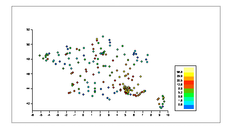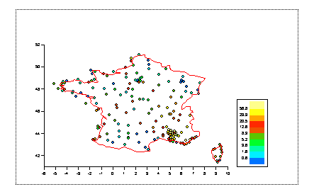 are rrfrance.dat containing levels of precipitation throughout France:
