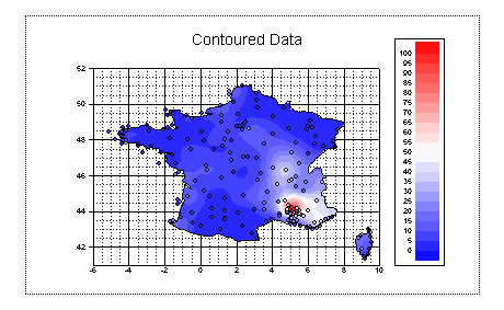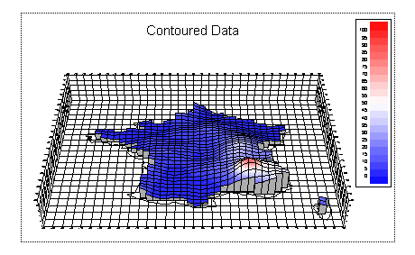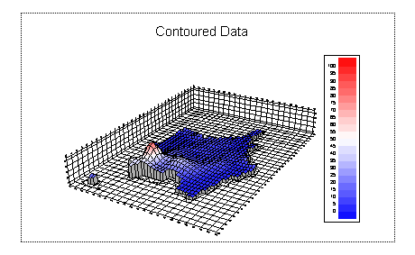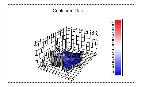 3D and 4D ContoursIn this step we will plot our data as a 3D and a 4D contour. A 4D contour is one in which one grid specifies the height of the contour and another grid specifies the colour. If your plot does not look like this run step4.gsl